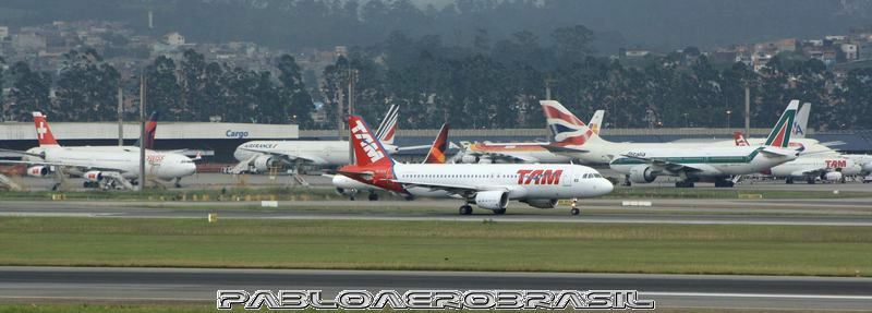 | Descrição: Pode-se ver nesta imagem: Airbus A-340 da SWISS, Boeing 767 da Air Canada, Boeing 777 da Air France, A-320 da TAM e da AVIANCA, A-340 da Iberia, 747 da British Airways, 777 da ALITALIA | |