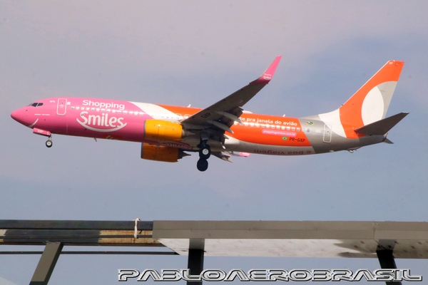 | Foto: Boeing 737-800 da Gol com pintura Smiles | |