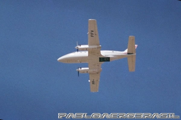 Note na barriga do avião a abertura para o comparimento das câmeras fotográficas, que nesse momento fazem o trabalho de aerofotogrametria.