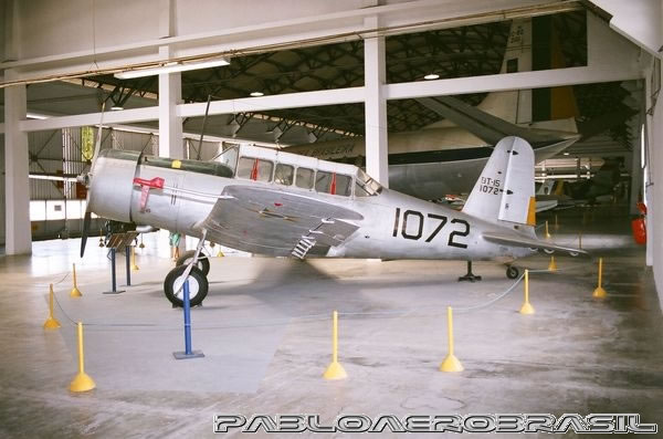 | Descrição: O CONSOLIDATED VULTEE BT-15 é um avião para dois tripulantes, destinado ao treinamento básico de pilotos. Voou pela primeira vez em 1940, sendo o modelo de treinamento mais utilizado pelos Estados Unidos durante a Segunda Guerra Mundial, quando foram construídas mais de 10.000 unidades. O exemplar em exposição é, originalmente, um BT-13A de 1941 (motor Pratt & Whitney R-985-NA-1) designado para a Marinha dos Estados Unidos como SNV-1 e transferido para a Força Aérea do Exército dos Estados Unidos, onde foi transformado em BT-15 com a instalação de um novo motor Wright R-975-11. Foi adquirido pela Força Aérea Brasileira em 1942 e voou até 1956, utilizando o primeiro modelo de motor aeronáutico montado no Brasil, um F.N.M. R-975-11, da Fábrica Nacional de Motores. Autoria do texto: Museu Aeroespacial | |